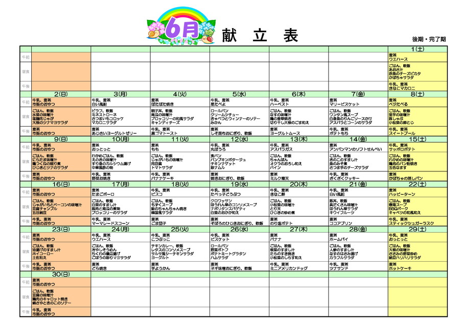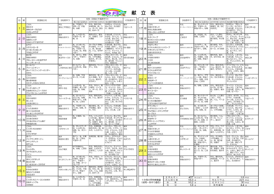 朝ごはんの欠食は、子どもの心身の発達に影響を与えると考えられていますので、しっかりと自宅で朝ごはんを食べてから登園させてください。